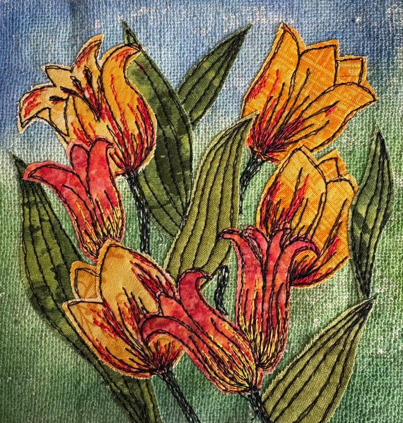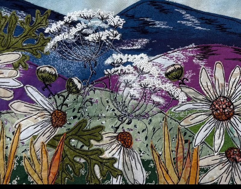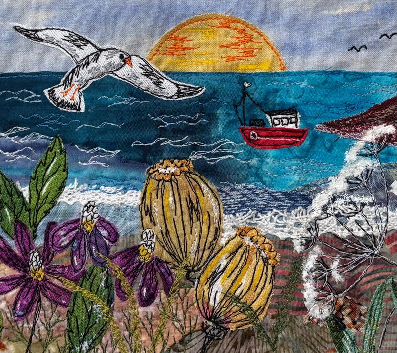I have always had a keen interest in embroidery from as early as school days when needlework was one of my favourite subjects. I have always had sewing projects on the go, several years ago I joined a half day course on freehand machine embroidery which set me on the course I follow today. My embroidery incorporates appliqué techniques and paint which bring the pieces to life. My designs are mostly inspired by nature.