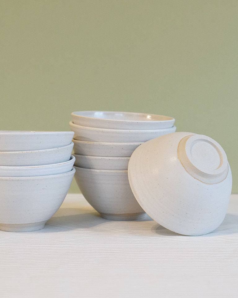 I am a potter, focussing on wheel thrown domestic stoneware. Originally from Hereford, I now work nearby at Earthrise Pottery Studio. I like to make quiet and simple ceramics that bring moments of calmness to your everyday. I explore sustainability by developing my own simple glazes which are less reliant on harsh oxides, use waste materials such as locally collected plant/wood ash and eggshells and I fire in a renewably powered electric kiln.
